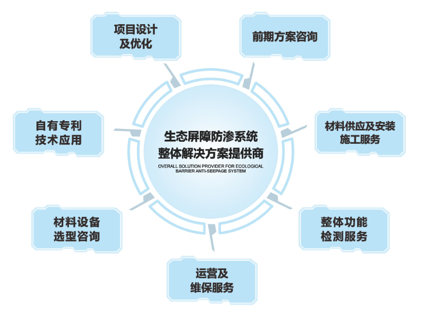 公司具有环保工程专业承包一级资质,主要技术负责人参编国家及行业标准《生活垃圾卫生填埋场防渗系统工程技术规范》、《石油化工工程防渗技术规范》、《有色金属堆浸浸出液收集系统技术规范》,公司目前拥有生态屏障防渗技术发明及实用新型专利36项。公司施工负责人曾组织参与国内单体防渗面积最大的生活垃圾填埋场防渗工程及亚洲单体防渗面积最大的危险废弃物处置场防渗工程。